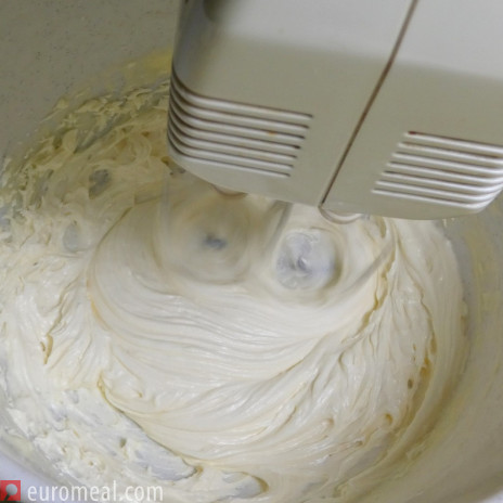2014 Weiße Schokolade Ganache. Weiße oder bunte Ganache - zum Einstreichen von Torten. 3 Teile Kuvertüre und 1 Teil Sahne.